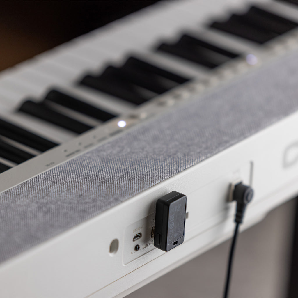 With this device, your piano can communicate directly with other MIDI-enabled Bluetooth devices.