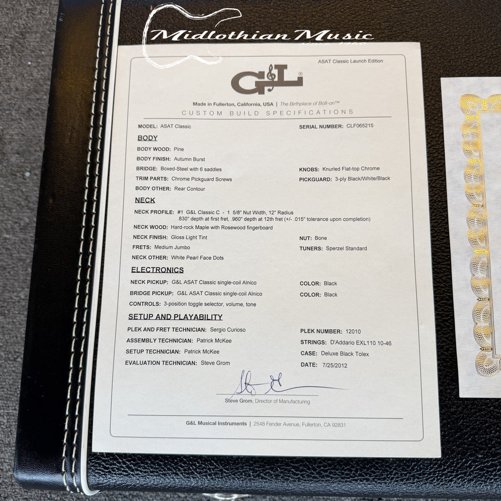 - G&L ASAT Classic USA - Launch Edition - 6-String Electric Guitar - Autumn Burst Finish w/Case USED