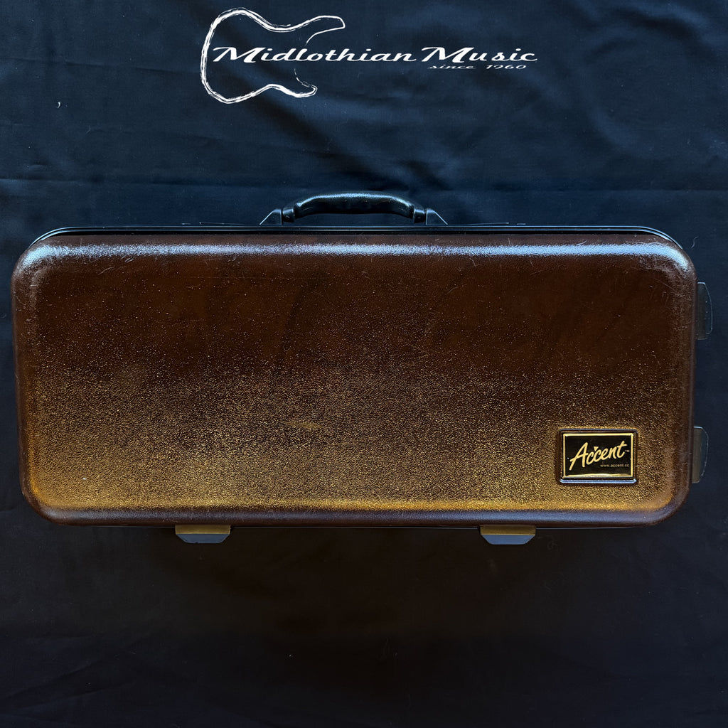 This Accent Alto Saxophone has been refurbished by one of Midlothian Music's expert band instrument technicians. We have been a band instrument dealer and service center for over 60 years! We clean & adjust every horn and play test it. Soaked and disinfected and then oiled and greased, so it is ready for the next player!