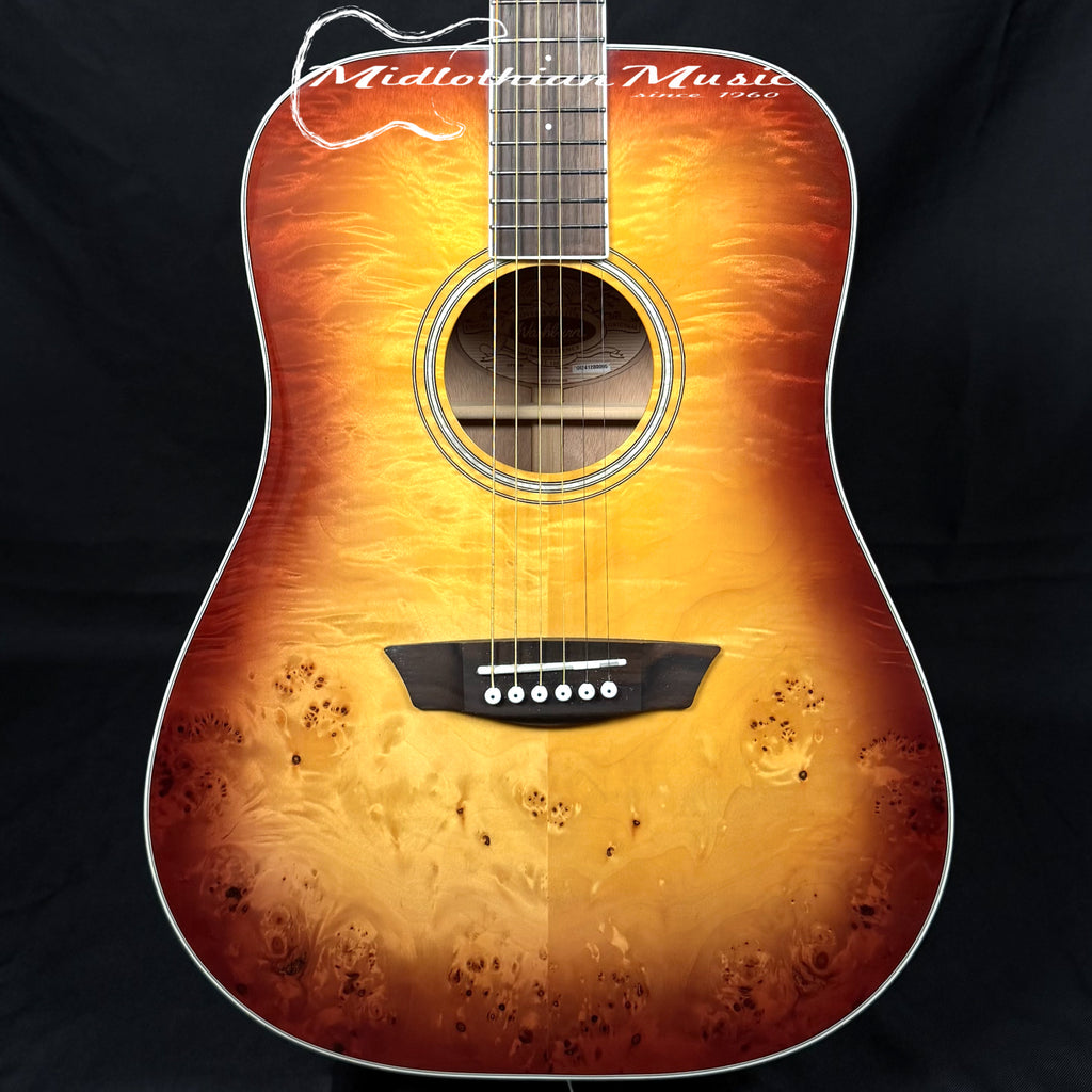 Washburn - Deep Forest Burl - 6-String Dreadnought Acoustic Guitar - Amber Fade Gloss