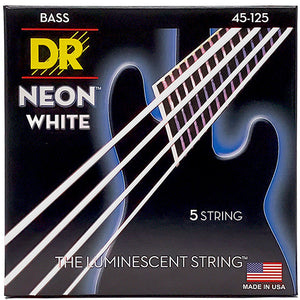 - DR Strings - Hi-Def Neon - White K3 Coated Electric Bass Strings - NWB5-45 - 5-String Bass - 45-125 (1 Pack)