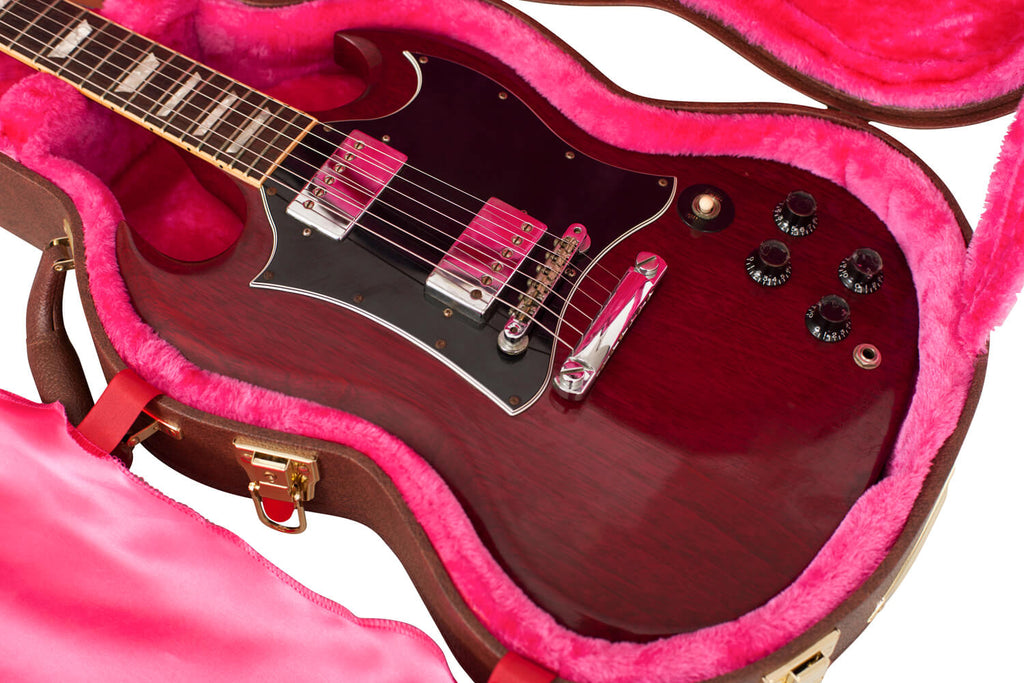 - Plush Magenta Interior with Interior Cover Designed to Fit Gibson SG® and Similar Style Solid-Body Electric