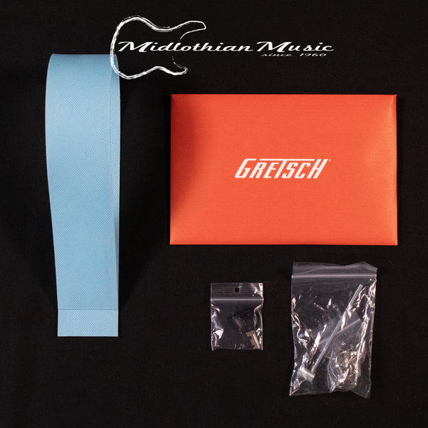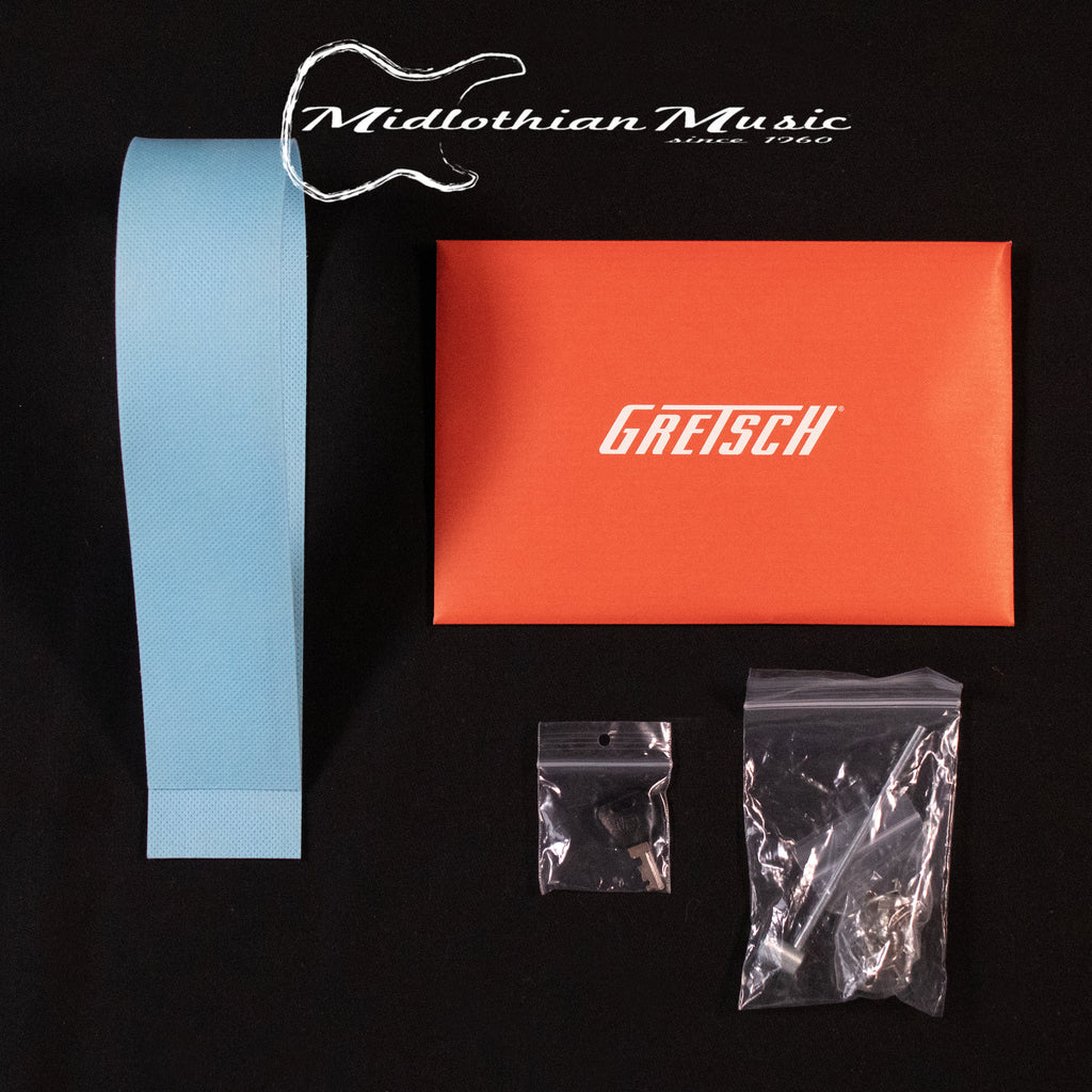 This powerful platform is fueled by all-new Gretsch Broad'Tron BT65 pickups. Designed by the famed Tim Shaw, the BT65 meticulously captures the guitar's sonic palette and reproduces powerful mids, extended lows and an exceptionally clear, yet smooth high end. The result is the perfect mixture of wall-shaking power and full-spectrum fidelity that delivers unparalleled overdrive and shimmering cleans.