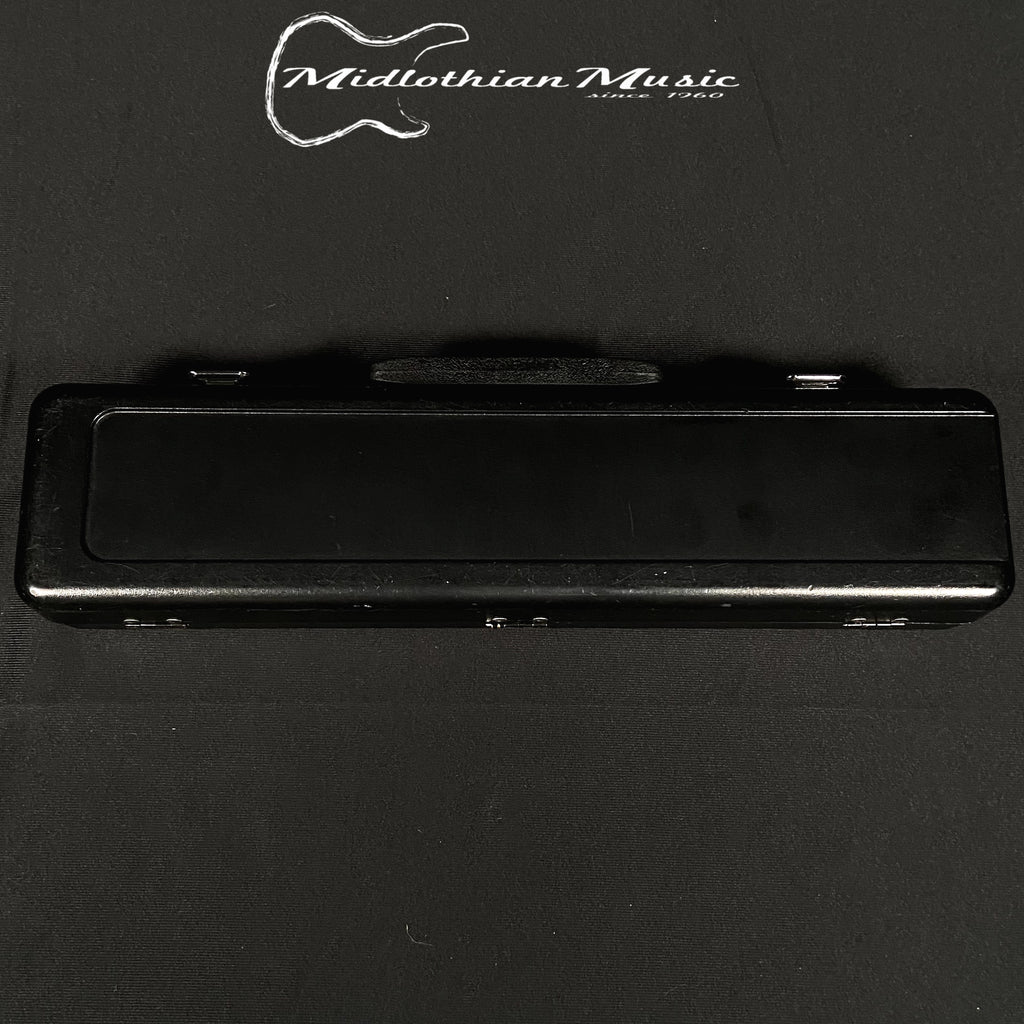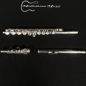 This Yamaha Flute has been disassembled, cleaned and serviced by one of Midlothian Music's expert band instrument technicians. We have been a band instrument dealer and servicer for over 64 years as a family owned business. We clean and adjust every horn and play test with our mouth piece. This instrument has been soaked and sanitized and then oiled and greased. All pads and corks have been inspected and replaced if needed. Lastly the mouthpiece was soaked, sanitized to be free of germs and head joint cork adjusted. This instrument will be safe for anyone to play safely. Fully adjusted to play with a light touch. Feel comfortable purchasing, this flute plays perfectly and sounds great!
