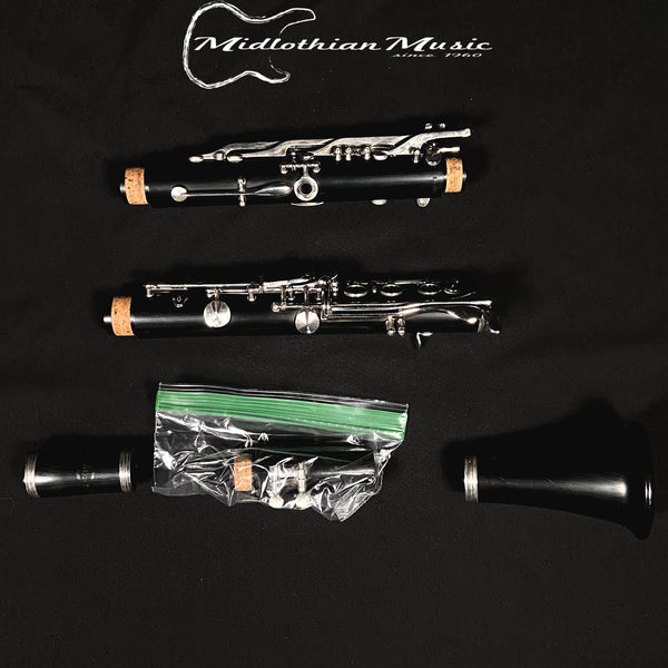 Midlothian Music is a service center, we soak, clean and sanitize every instrument. The tone holes and inner bore are scrubbed as well as all of the keys and armature. During reassembly we adjust all keys to a light finger touch. Lastly the mouthpiece is soaked, scrubbed and sanitized and placed in a zip loc bag. Pads and key corks inspected, cleaned and replaced if needed. The joint corks are inspected and replaced if necessary. Leak tested before placing in cleaned case. This instrument plays extremely well and you won't be disappointed!