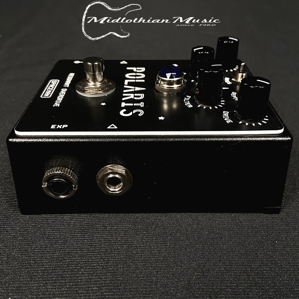 Polaris is a dynamic medium-gain overdrive, with incredibly flexible tone-shaping capabilities. Featuring a 2-pole resonant filter, fully controllable via expression pedal for filter sweeps and out-of-this-world overdrive tones.